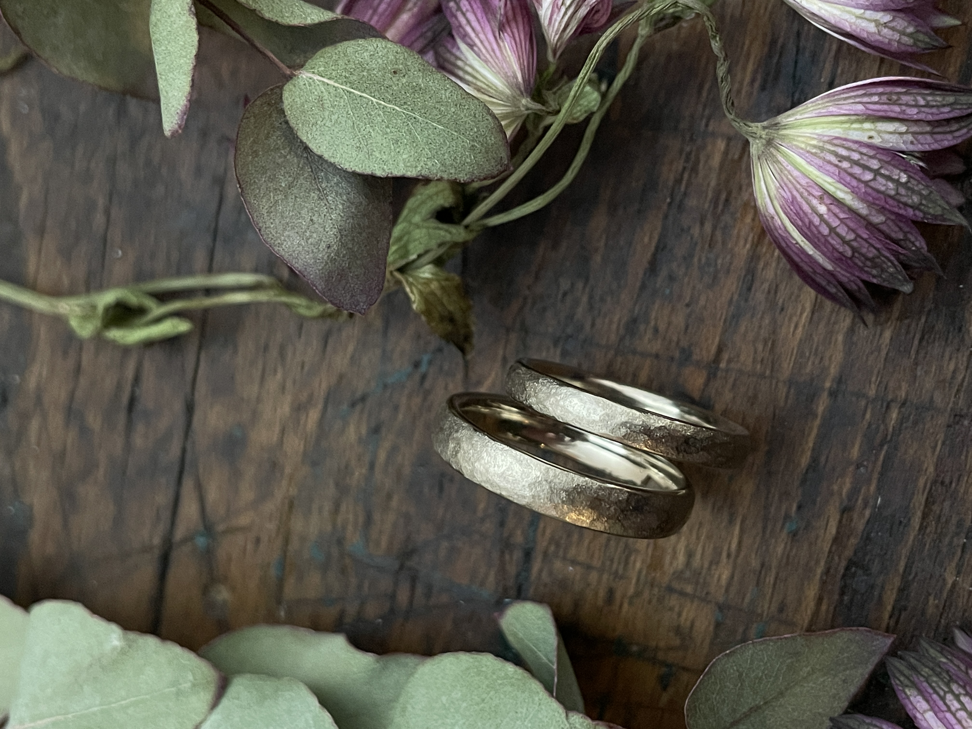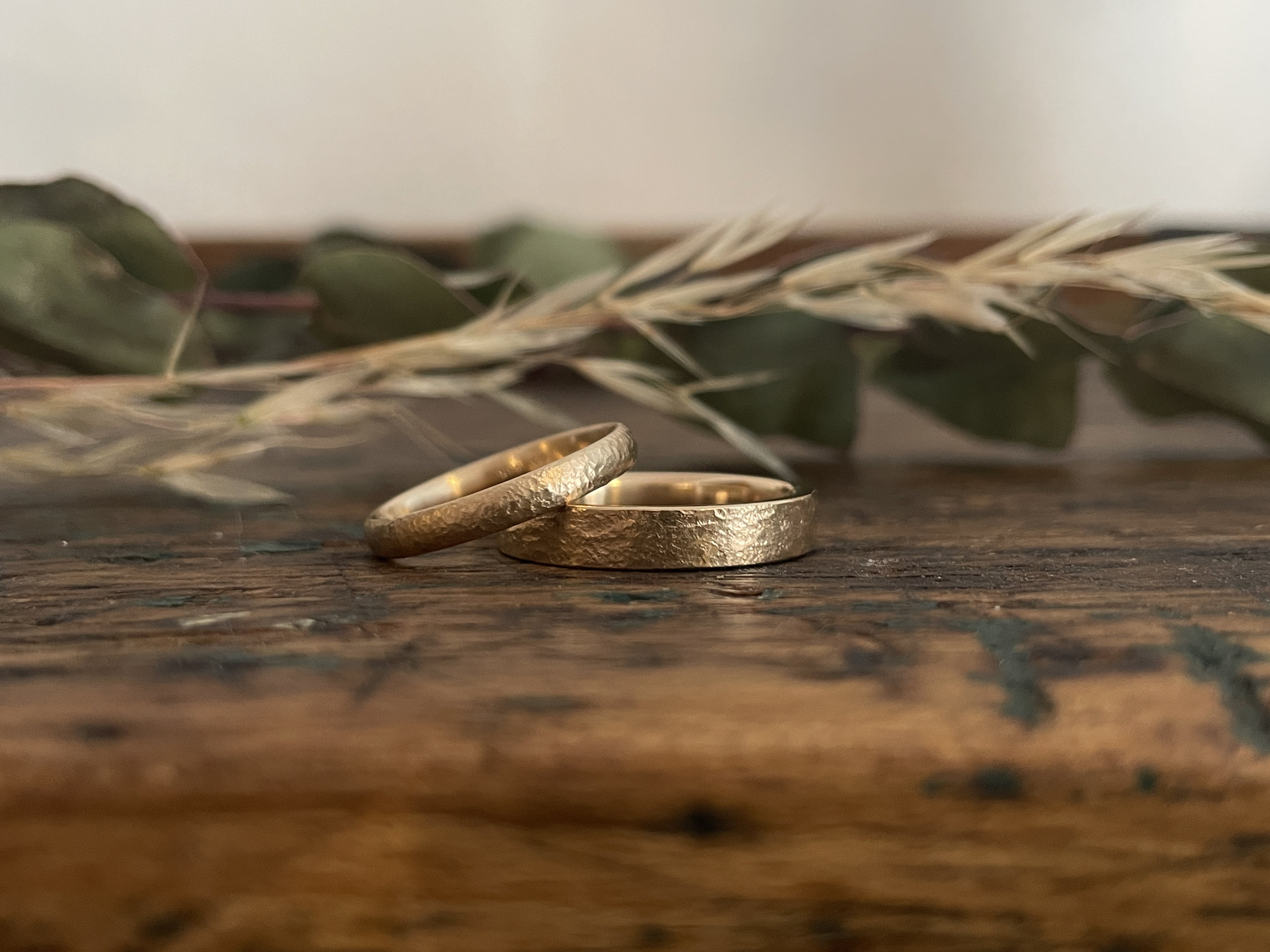 Die Beratung dauert etwa eine Stunde und findet in einer gemütlichen, ungezwungenen Atmosphäre statt. Sobald sich Ringgröße, Breite, Form und Farbe herauskristallisiert haben, erhaltet ihr einen unverbindlichen Kostenvoranschlag per Mail. Nach eurer Bestätigung schicke ich euch eine Anzahlungsrechnung. Ist diese bezahlt, beginne ich mit der Anfertigung eurer Eheringe.